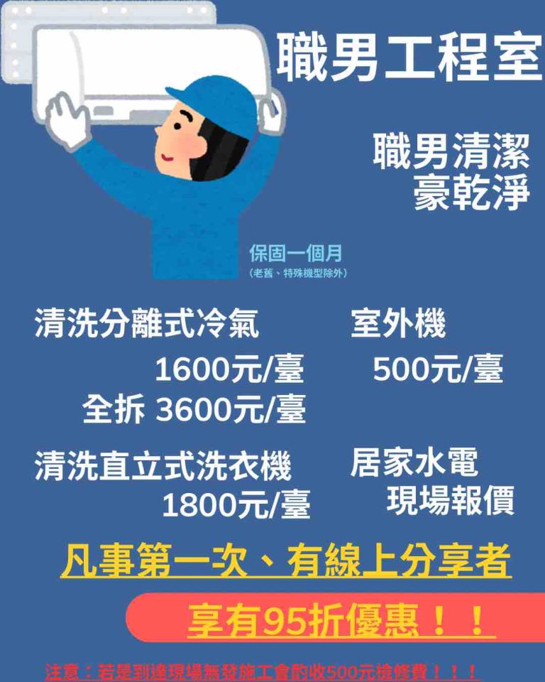 不論是洗衣機還是冷氣清洗,流程簡單明瞭、客製化服務確保您的需要被滿足。我們致力於無縫溝通,讓您輕鬆預約並了解所需的服務項目和價格。