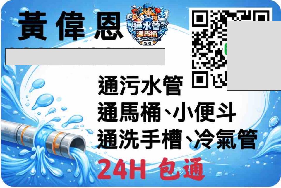 專家介紹 通管學長致力於水管疏通: 蹲/坐式馬桶疏通、小便斗疏通、洗手槽疏通、冷氣排水管疏通、冷/熱水給水管疏通、頂樓/陽台雨水排水管疏通、營業場所重油疏通..等 我們將以最親切、實在的態度為您服務~ 不通保證免費! 顯示更多