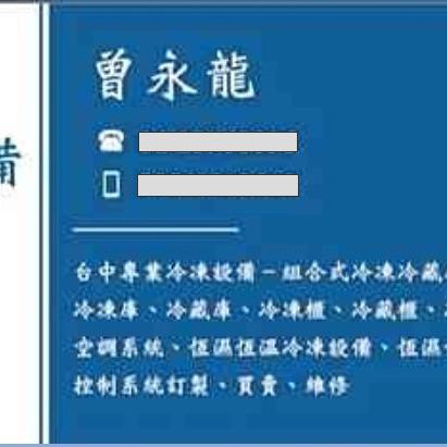 我們提供冷凍冷藏設備維修及冷氣安裝維修保養,服務項目:組合式冷凍冷藏庫維修安裝,工作台冷凍冷藏櫃維修安裝,商用立式冷凍冷藏櫃維修安裝,冷氣安裝移機保養,提供完整現場檢修維修服務,聯絡電話:0*********曾先生