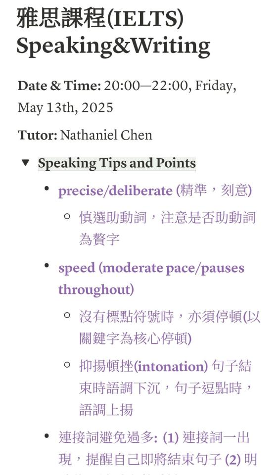📌 教學理念:由於我從小在母語環境下以母語方式學習,對實際建構語言基礎,發音以及理解非常熟悉及推崇。雖然我的課程中會適當引入技巧,及快解,核心教學會以穩健,實際的紮實累積實力為主。語言要真的會使用,必須循序漸進。