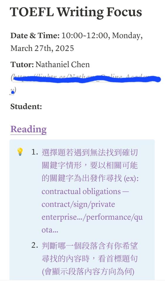 🎓 我是Nathaniel老師,畢業於台大外文系,現在在政大外交所撰寫論文。畢業於薇閣國高中,曾獲全台北英文寫作甲組冠軍,西塞羅英文辯論組別冠軍,數次校內英文演講前三名,以及全台北高中英文單字競賽冠軍。