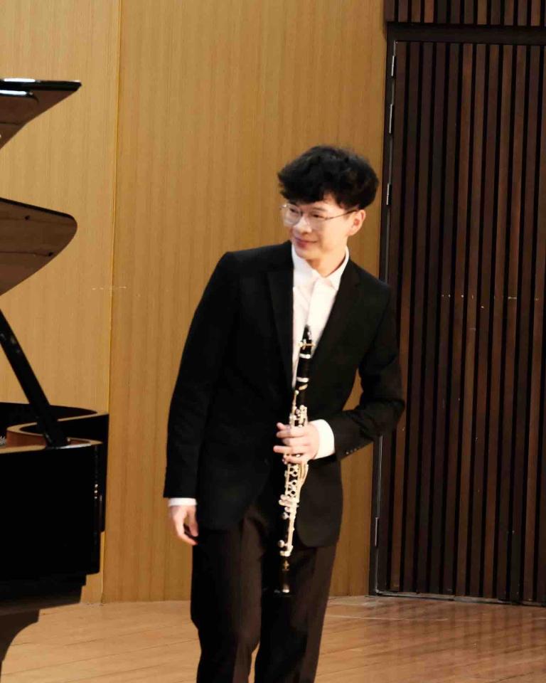 來自台灣,曾就讀師大附中音樂班,現就讀台北藝術大學管樂與擊樂研究所,曾師事李佩玲、郝偉文老師、現師事林佩筠老師,曾上過 Olivier patey 和 Sebastian Appel 的大師班,獲得過2022 Buffet 單簧管音樂大賽首獎。
