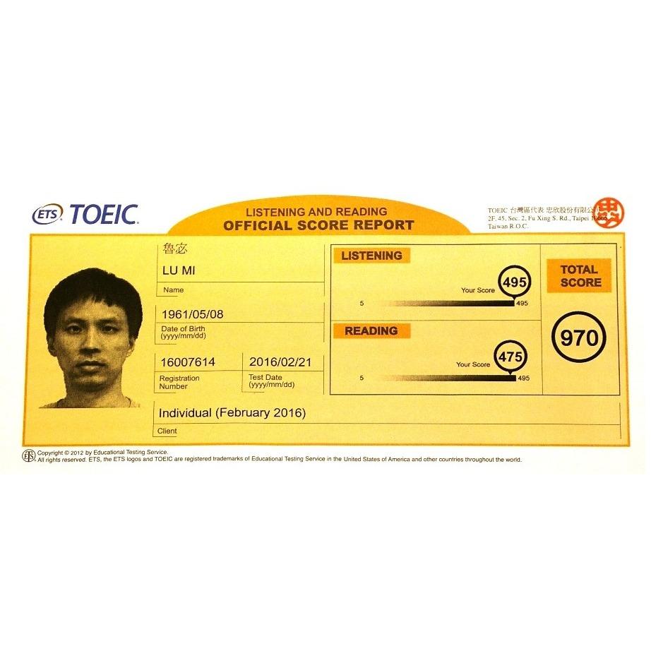 托福620分,多益970分,聽力極佳